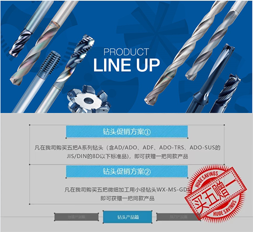 鉆頭促銷對象1:A系列鉆頭是OSG兼顧刃尖剛性和切削阻力,推薦適用于廣泛加工材料的硬質合金鉆頭系列。此次促銷包含通用性鉆頭、平頭鉆、三刃鉆及不銹鋼專用鉆頭產品。