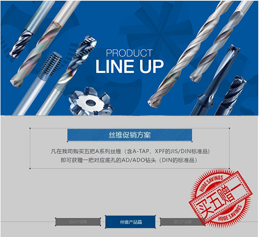 絲錐促銷對象:A絲錐是我司具有代表性的高通用性高速鋼絲錐系列產品,能適應各種加工材料和加工環境,并能幫助制造商簡化工具管理。